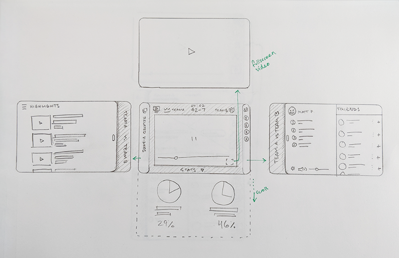 For inspiration and also to gauge where other apps might be lacking, we gathered screenshots of other video and sports apps. As a group we discussed what we liked and what we didn’t, any new ideas that were sparked, and how we should move forward.